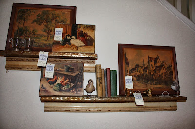 The main lot for this salvage yard is across the street. I picked up an old paned window with milky glass that now hangs in my guest bathroom and some old and rusty ceiling tin that my husband made into shelves and I sold. See the tin on the top and that's a bed frame rail on the bottom. The headboards are below